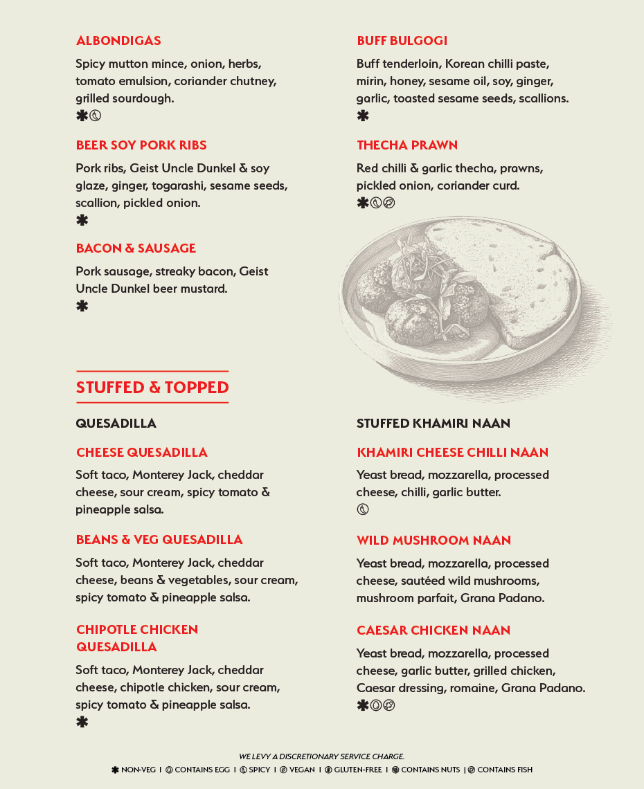 We celebrate the spirit of culinary exploration, offering a diverse array of flavours inspired by street food: honest, no-fuss dishes that comfort the soul.